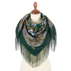 Pavlovo Posad Shawl 125×125 シルクフリンジ White Night's Lacy Dreams ダークグリーン